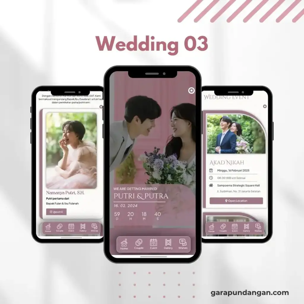 WE ARE GETTING MARRIED Putri & Putra 16. 02. 2025 00D 00H 00M 00S P | P وَمِنْ اٰيٰتِهٖٓ اَنْ خَلَقَ لَكُمْ مِّنْ اَنْفُسِكُمْ اَزْوَاجًا لِّتَسْكُنُوْٓا اِلَيْهَا وَجَعَلَ بَيْنَكُمْ مَّوَدَّةً