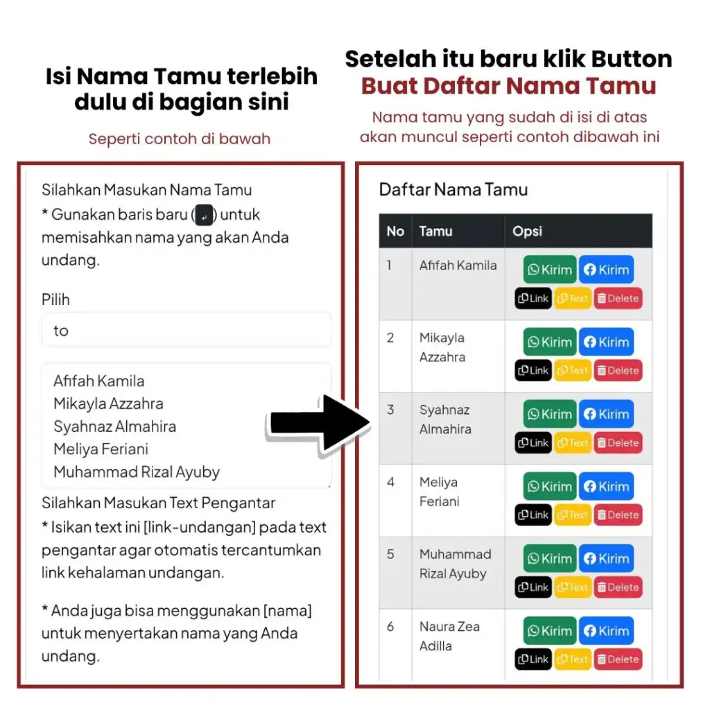 2.  Setiap satu nama tamu tidak boleh melebihi dari 25 Karakter (Sudah termasuk Spasi)
