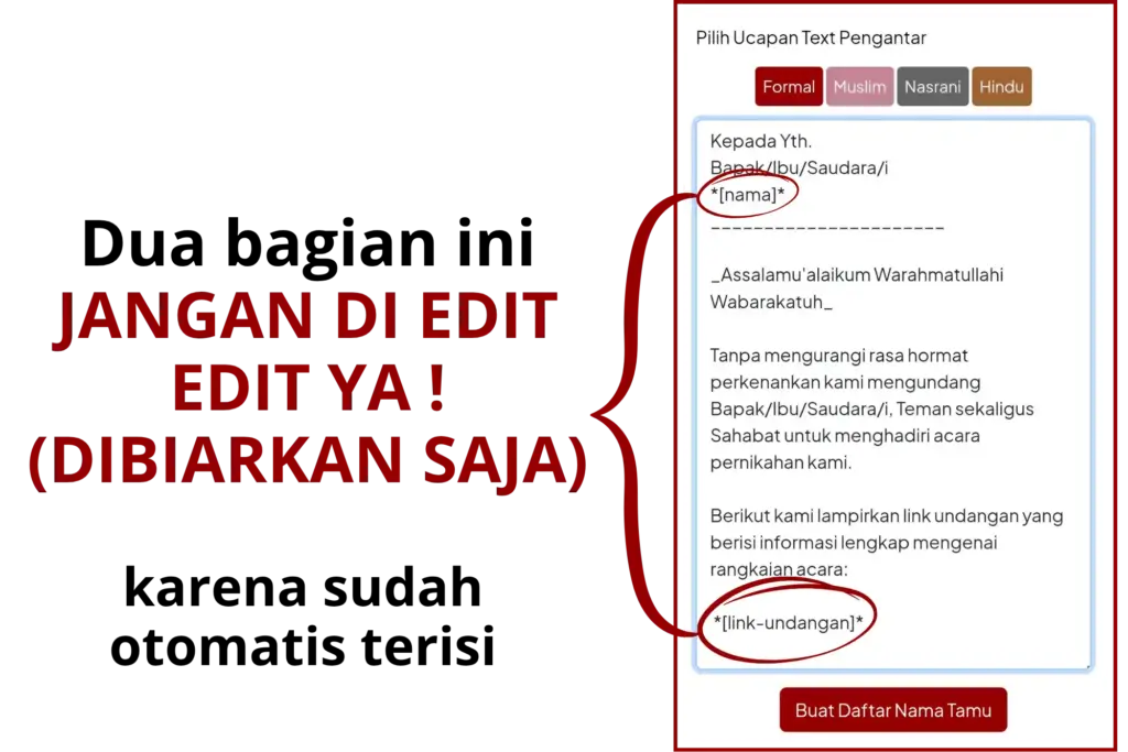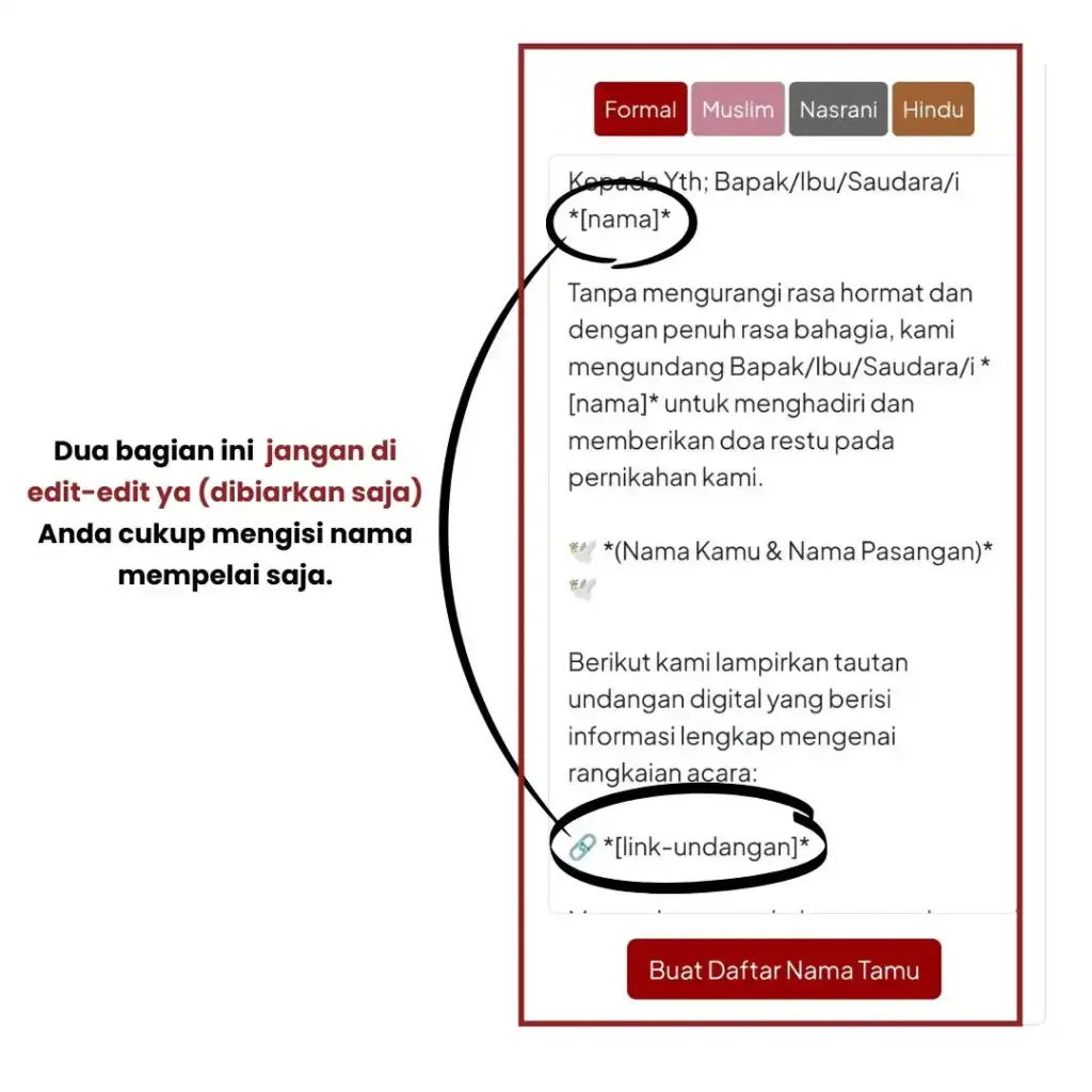 3. Di format text pengantar yang bagian [nama] & [link-undangan]
